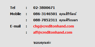 ลง Text Link ติดต่อ creditonhand@gmail.com